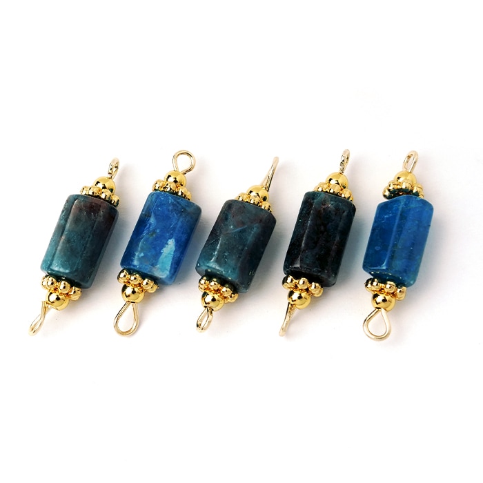 【銅製/1個売り】アパタイト コネクター 円柱カット 天然石チャーム 約25×6mm ハンドメイド用