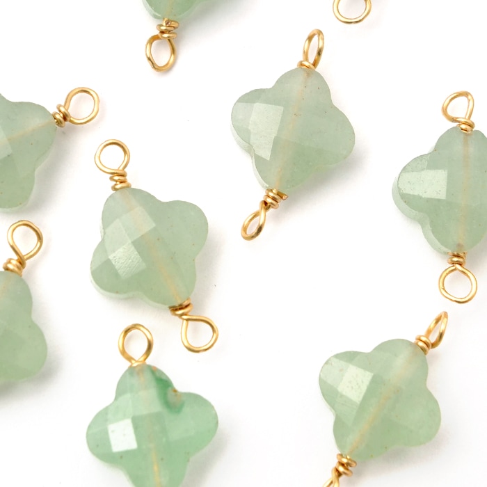 【K14GF/1個売り】グリーンアベンチュリン コネクター クローバーカット 天然石チャーム 約18×10mm