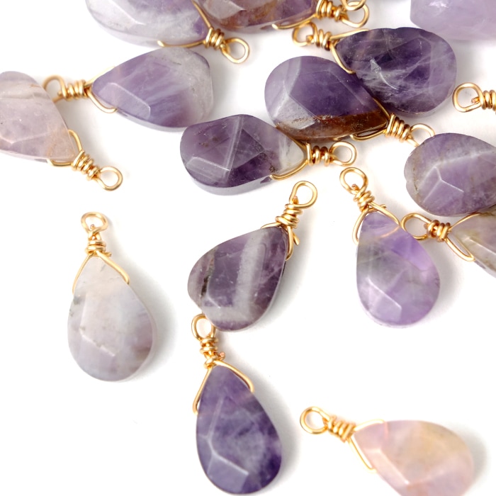 【アメジスト】天然石 K14kgfカラー ワイヤー巻き 1個売り 紫水晶 ハンドメイド素材 チャーム