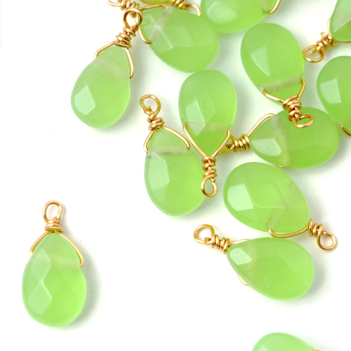 【天然石】グリーンオパール ペアシェイプカットチャーム 約19×14mm ゴールドワイヤー ハンドメイド素材