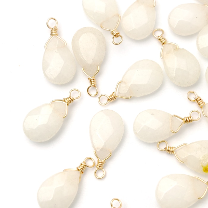 ホワイトメノウ【1個売り】天然石 ドロップ型 チャーム K14kgfカラーワイヤー アクセ素材 ハンドメイド