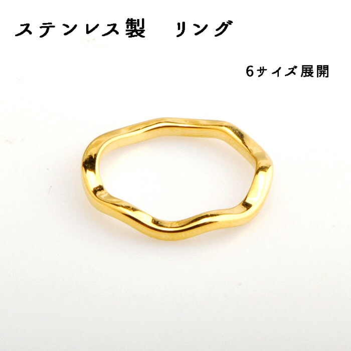 ステンレス リング【01】 ウェーブA ゴールド 【1個】6サイズ 金属アレルギー対応 指輪 国内発送