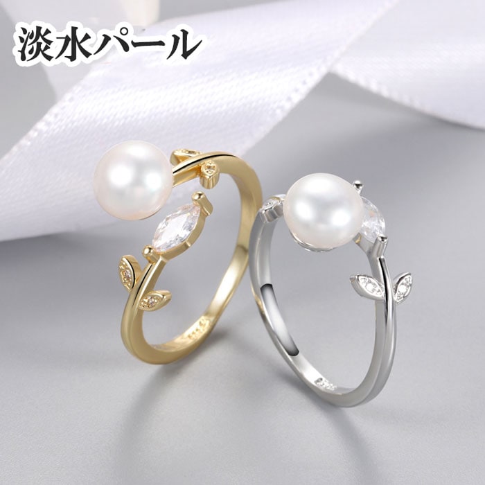 【02. 淡水パール リング】フリーサイズ 葉 リーフ ゴールド シルバー レディース 国内発送