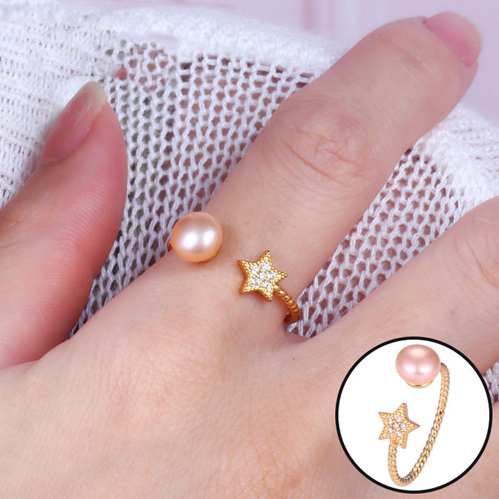 【05. 淡水パール フォークリング】フリーサイズ 指輪 星 レディース 韓国風 アクセサリー 国内発送