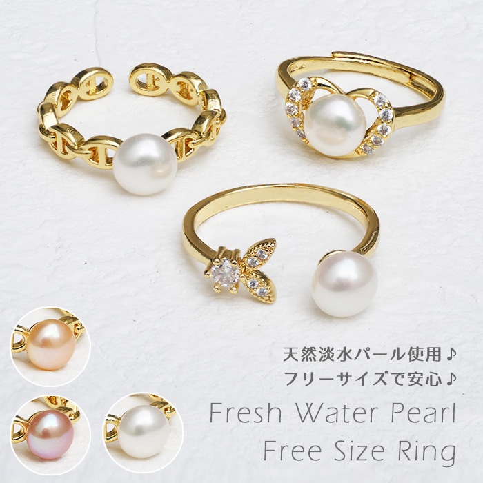 【06. 淡水パール リング】フリーサイズ 指輪 レディース ゴールド シルバー 国内発送