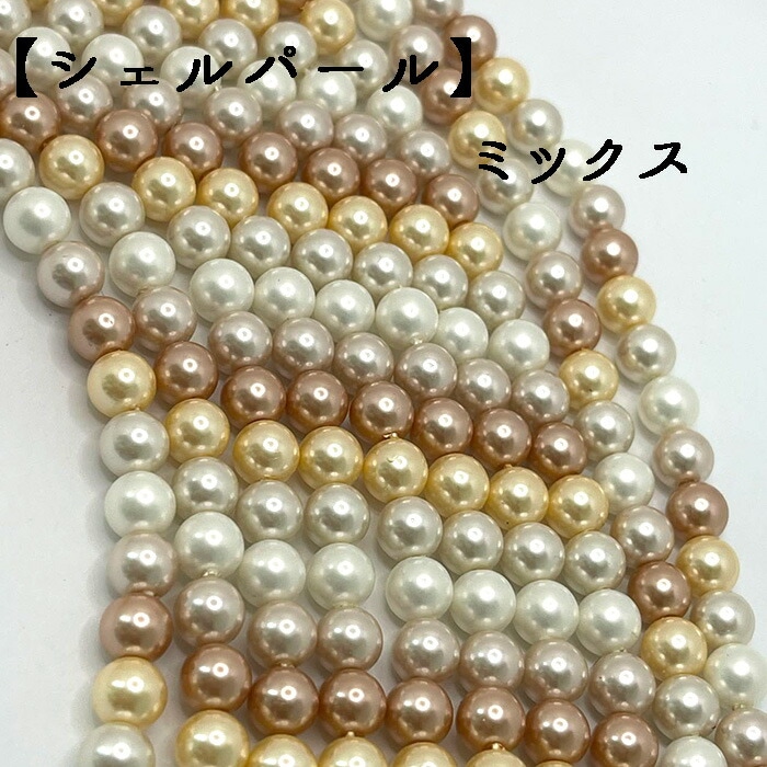 【シェルパール 】貝パール ビーズ ミックス(6mm) 連売り 素材 パーツ DIY 国内発送