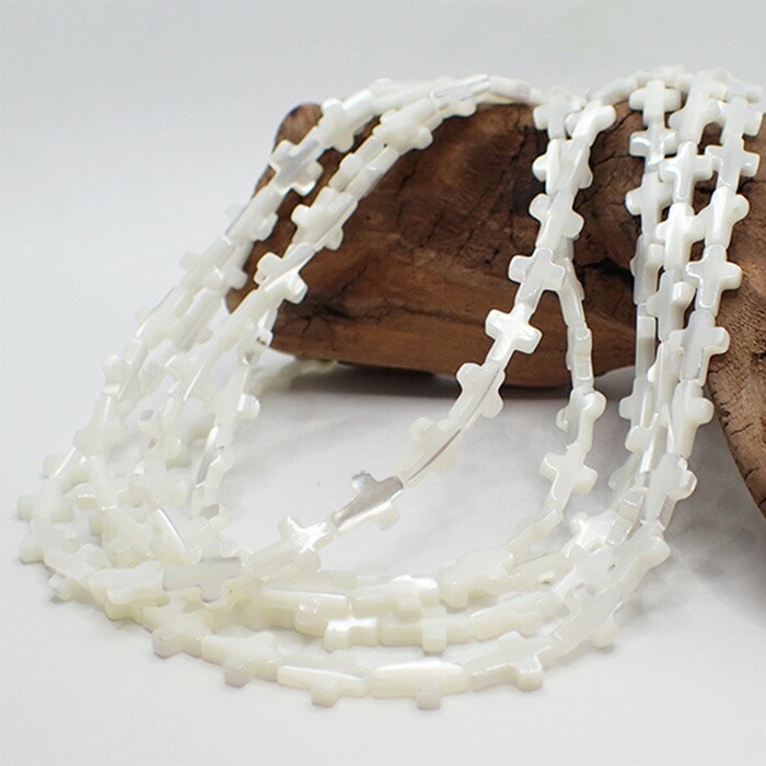 シェルパーツ【83. クロス 縦穴 ビーズ 5サイズ 1個売り】ホワイト 貝 天然素材 ハンドメイド 国内発送