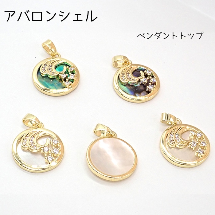 【107】アバロンシェル ホワイトシェル ペンダントトップ 波柄 コイン チャーム アクセサリー