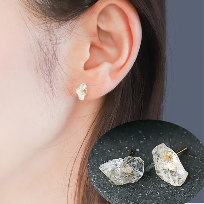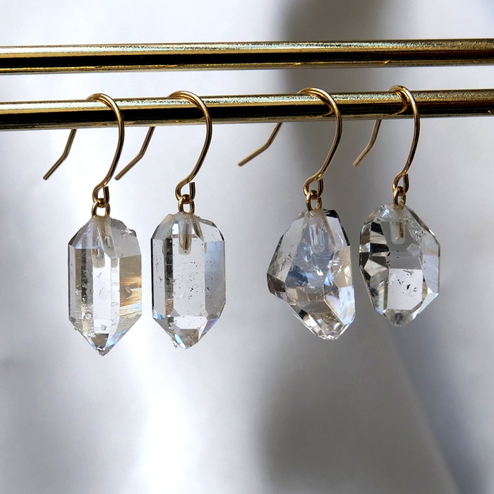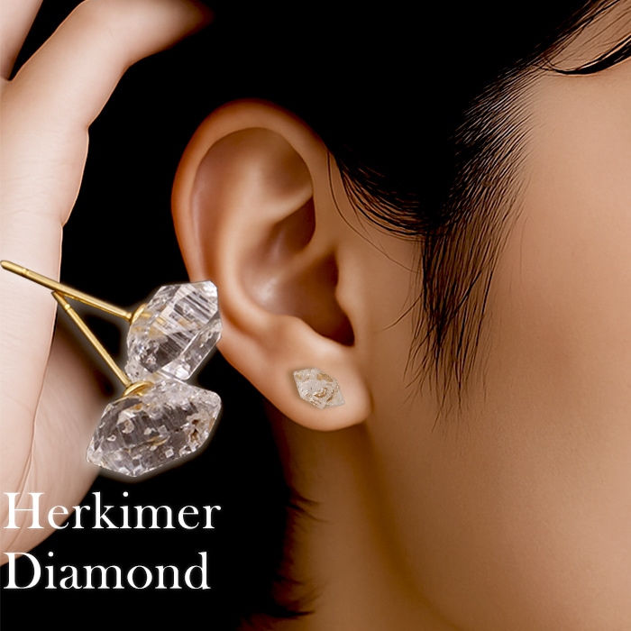 ハーキマーダイヤモンド アメリカ産 ピアス K18 ゴールド フック 2個 1セット ラフ 日本製