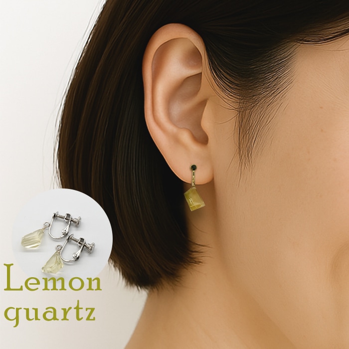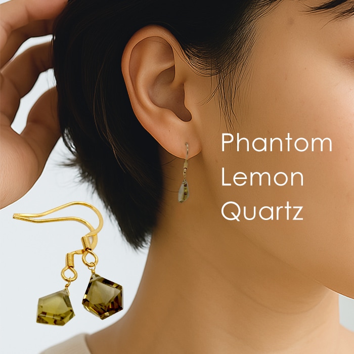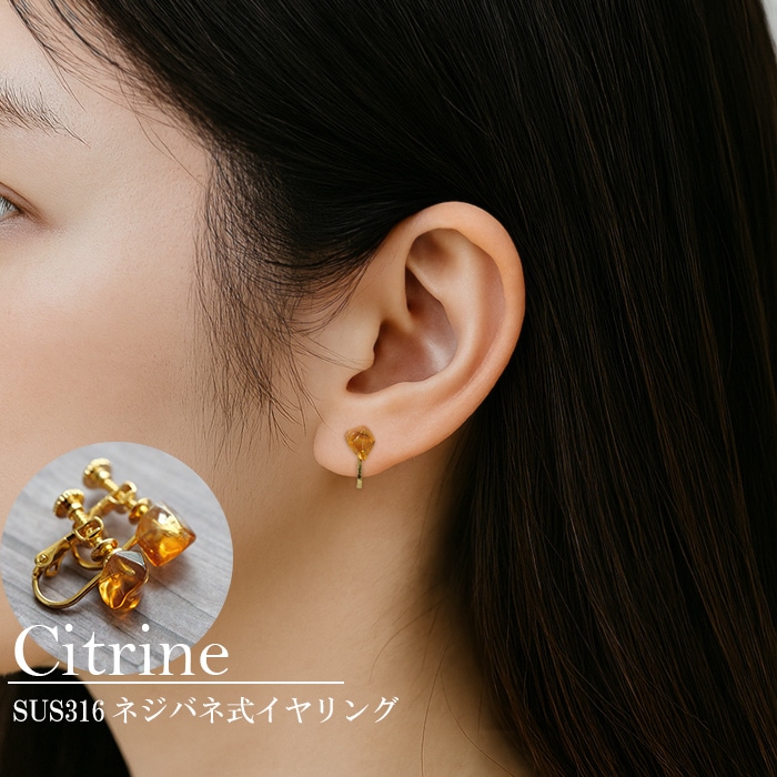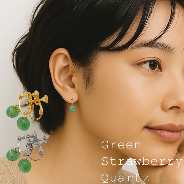 金属アレルギー対応 ステンレス イヤリング グリーンストロベリークォーツ 日本製 星カット 2個(1ペア) ゴールド ネジ式 ねじ式 ネジバネ式 天然石 自社製