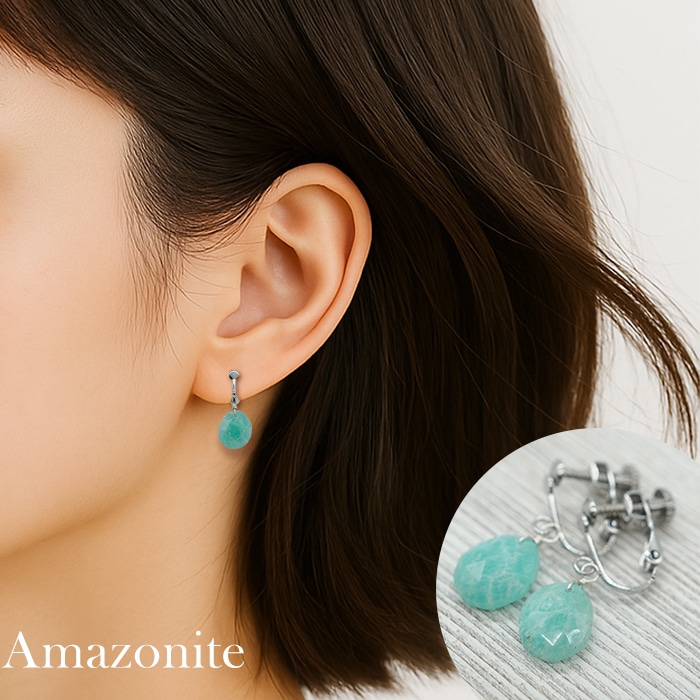 【ステンレス製】天然石 メノウ ピアス レディース アシンメトリー 金属アレルギー対応 シンプル