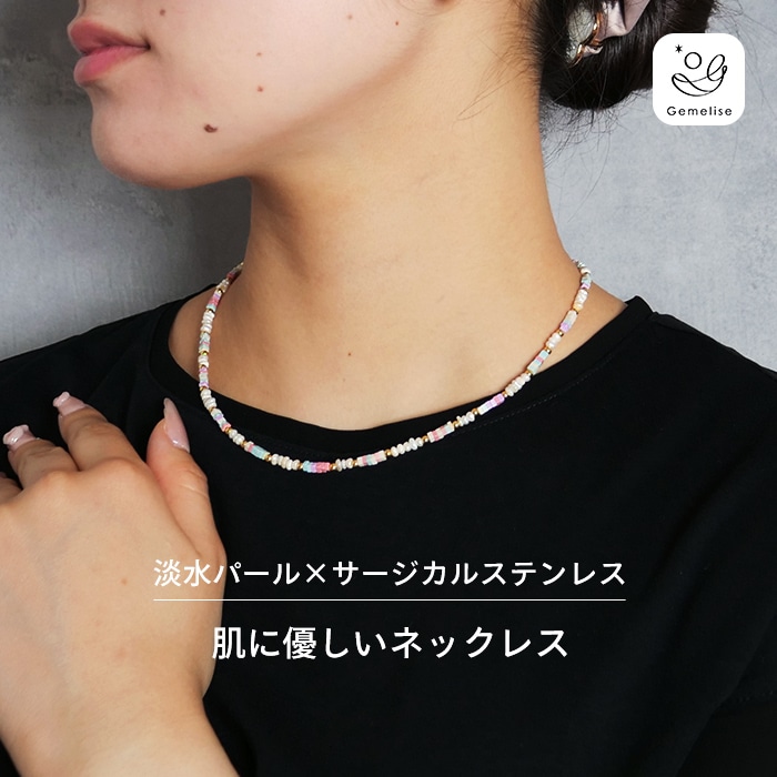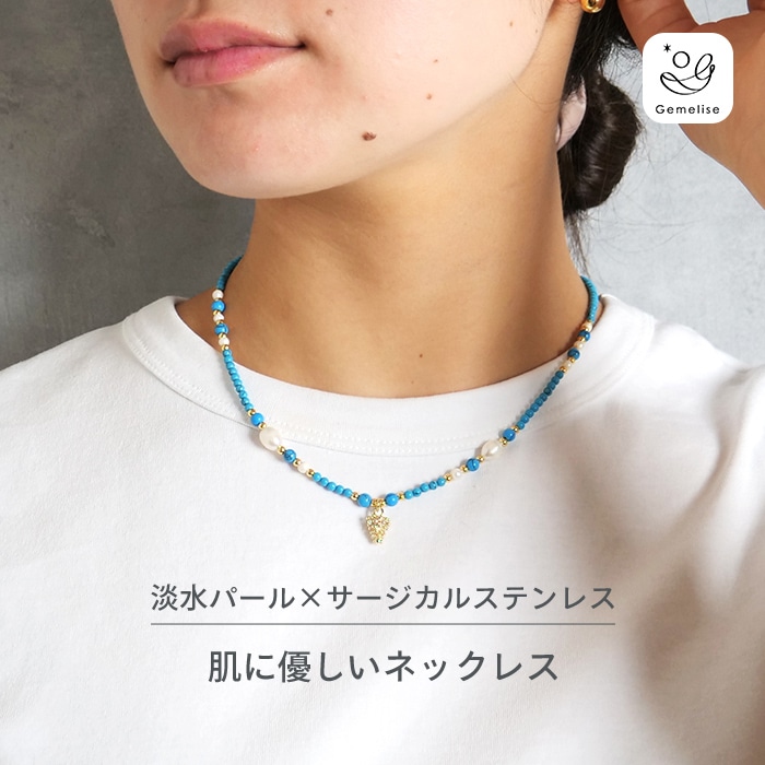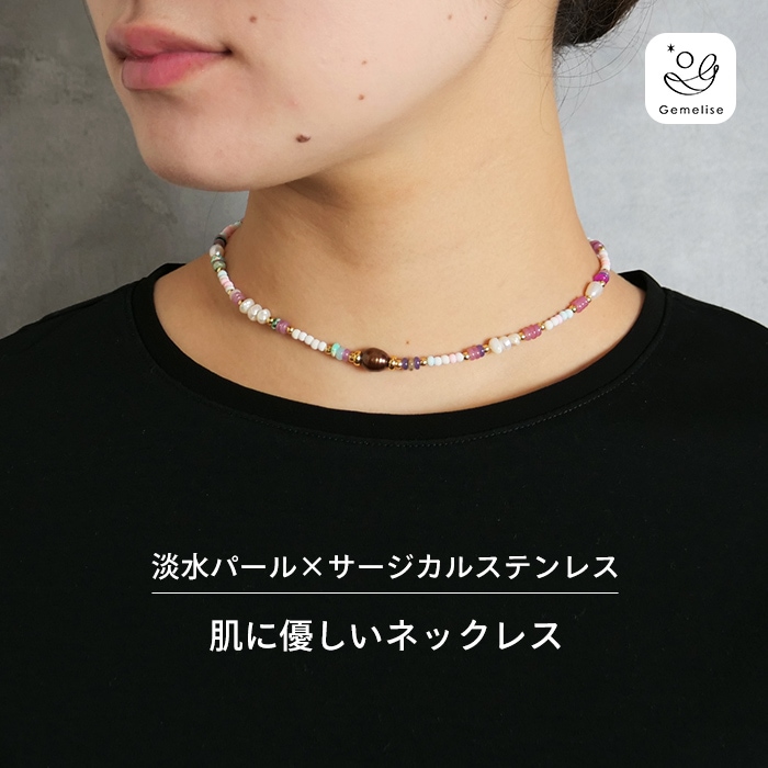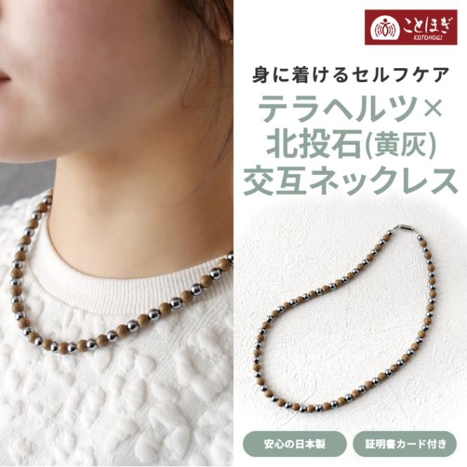 ことほぎ KOTOHOGI テラヘルツ×北投石(黄灰) 交互 ネックレス 約45cm KN0025