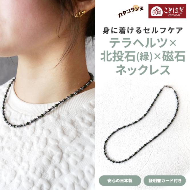 ことほぎ KOTOHOGI カタコランヌ プレミアム テラヘルツ×北投石(緑)×磁石 磁気ネックレス 約50cm KN0052