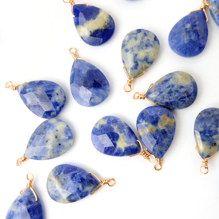 【1個売り】天然石 ソーダライト ペアシェイプチャーム 約19×14mm K14KGFワイヤー使用 青