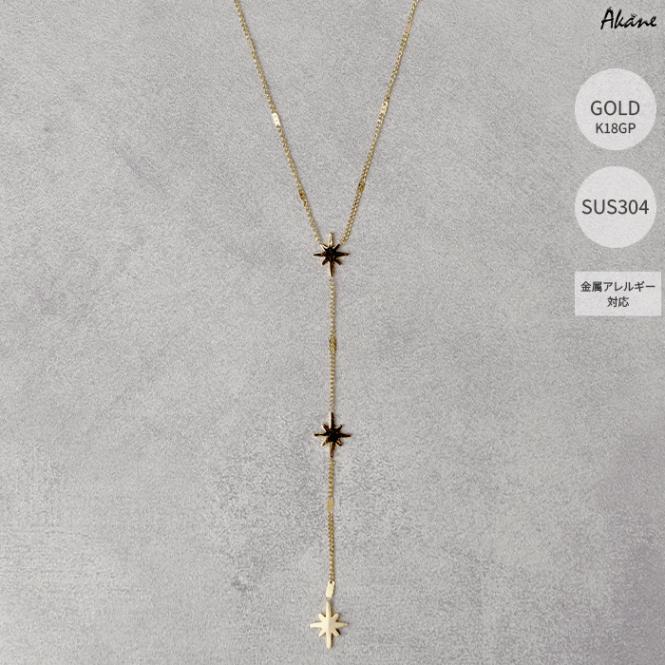 ステンレス304製 Y字ネックレス 【スター】約8.5*10.5mm ボックスチェーン 1本 ロング アレルギー対応