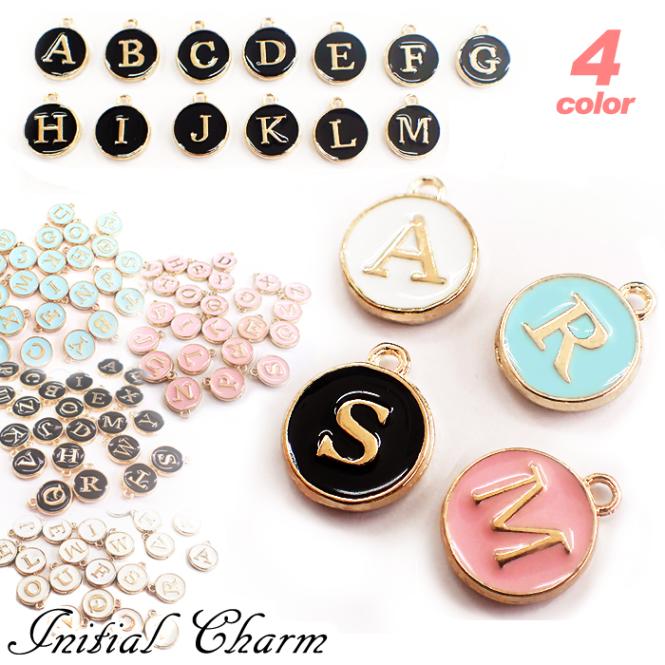 メタルチャーム【143.イニシャル】【A~M 4色】 金属パーツ アルファベット 文字 パーツ 【約14mm×約12mm カンつき ばら売り】 1個 ハンドメイド チャーム DIY 国内発送