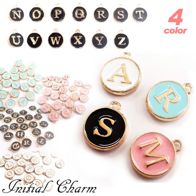 メタルチャーム【144.イニシャル】【N~Z 4色】 金属パーツ アルファベット 文字 パーツ 【約14mm×約12mm カンつき ばら売り】 1個 ハンドメイド チャーム DIY 国内発送