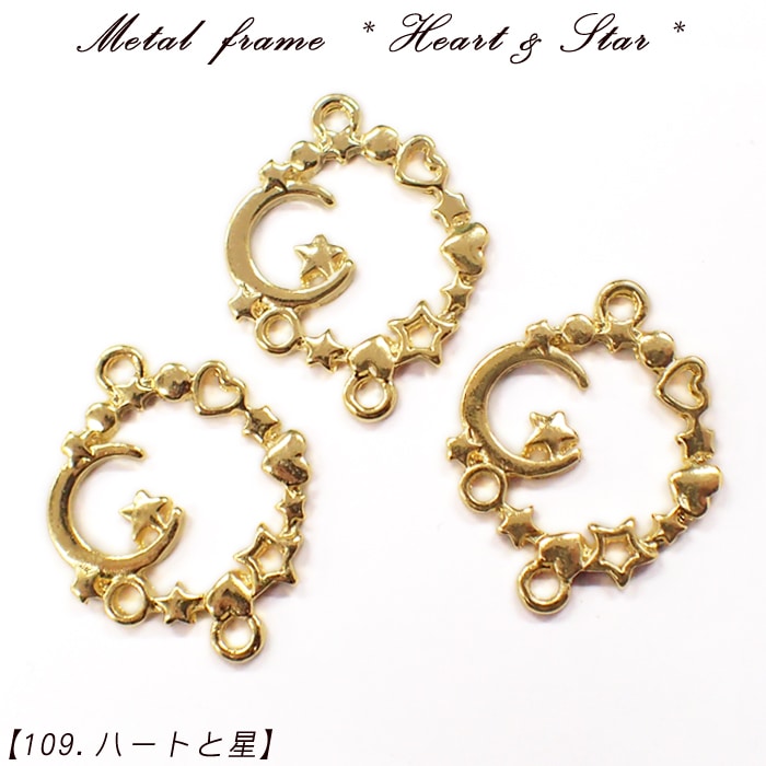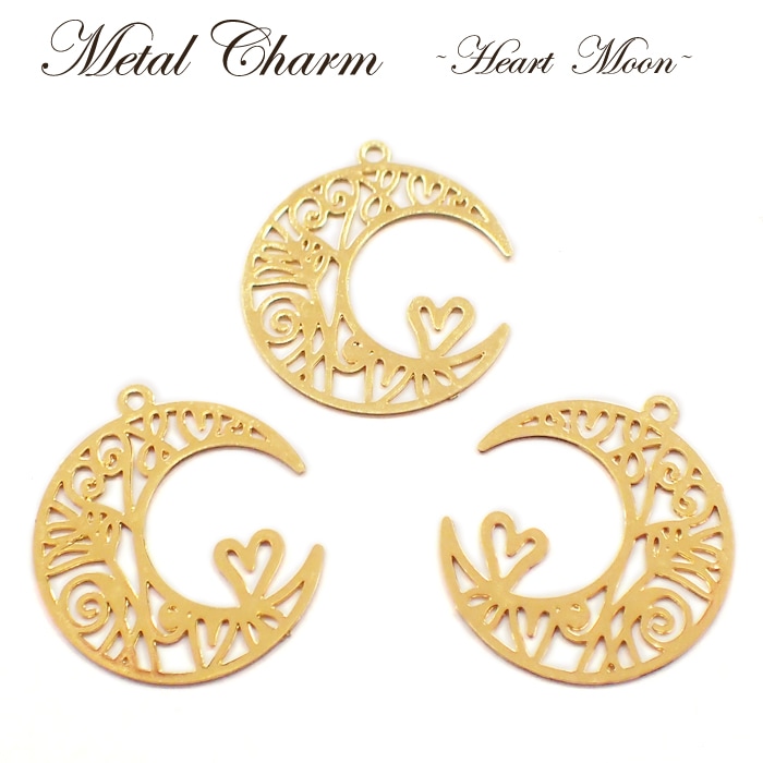 メタルチャーム 【154.三日月(ハート) 1個入り】 透かし ゴールド 金 ムーン 星 スター 夜 ナイト 渦 ネックレス【ばら売り】 ハンドメイド 手作り DIY 国内発送