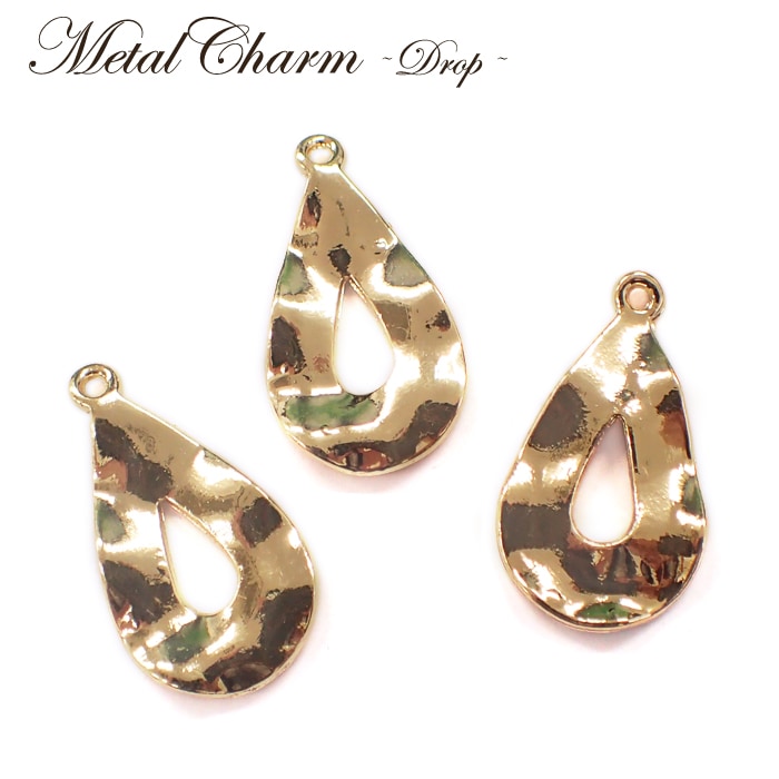 メタルチャーム 【169.ウェーブドロップ 1個売り】 しずく 雫 涙 波 変形 模様 柄 不規則 金属 ゴールド ネックレス【ばら売り】 ハンドメイド 手作り DIY 国内発送