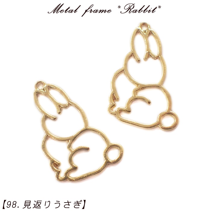 メタルフレーム【98.見返りうさぎ】【1個売り】ウサギ ラビット 兎 振り返り 後ろ姿 しっぽ ファンタジー 動物 アニマル レジン枠 ピアス ネックレス キット 春 秋冬 It DIY 国内発送