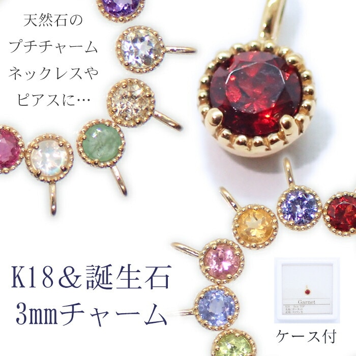 【6】誕生石 ジュエリー K18製 ペンダントトップ 3mm 1個 【ラッピング無料】天然石 ゴールド 18金 ペンダント ネックレス チャーム ハンドメイド 誕生日 プレゼント DIY 国内発送