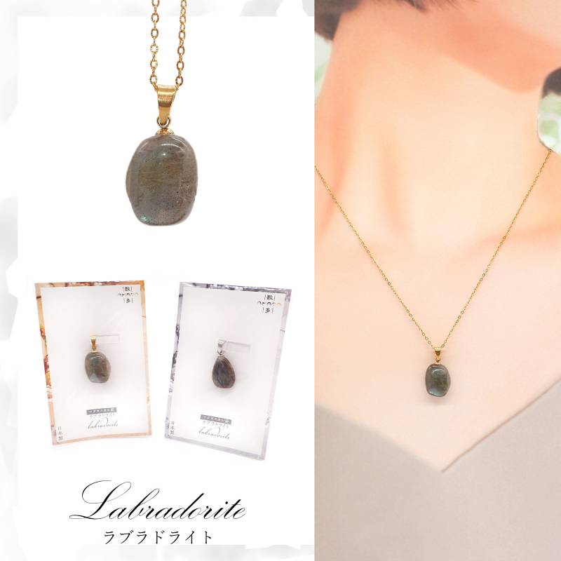 20. ラブラドライト ペンダントトップ 変形 ゴールド/シルバー SUS316L マダガスカル産 日本製 1個 サージカルステンレス パワーストーン 天然石 浄化 ネックレス アカネ 自社工場制作