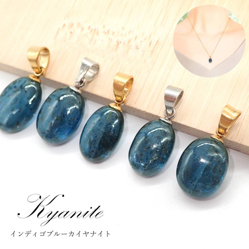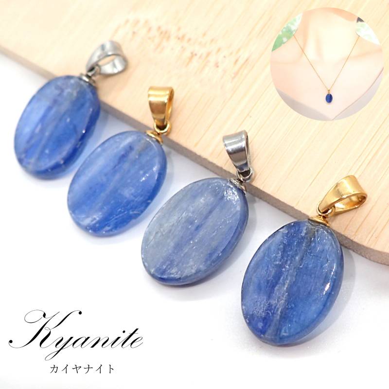 45. カイヤナイト ペンダントトップ ゴールド/シルバー SUS316 多面カット タンザニア産 日本製 1個 サージカルステンレス パワーストーン 天然石 浄化 ネックレス アカネ 自社工場制作