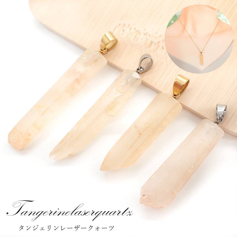 41. タンジェリンレーザークォーツ ペンダントトップ ゴールド/シルバー SUS316 コンゴ産 日本製 1個 サージカルステンレス パワーストーン 天然石 浄化 ネックレス アカネ 自社工場制作