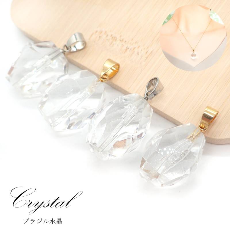 42. ブラジル水晶 ペンダントトップ ゴールド/シルバー SUS316 ブラジル産 日本製 1個 サージカルステンレス パワーストーン 天然石 浄化 ネックレス アカネ 自社工場制作