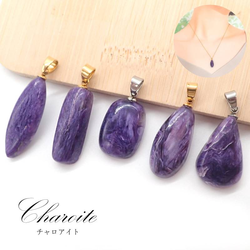 49. チャロアイト ドロップ スクエア 変形 ペンダントトップ SUS316 ロシア産 日本製 1個 サージカルステンレス パワーストーン 天然石 浄化 ネックレス アカネ 自社工場制作