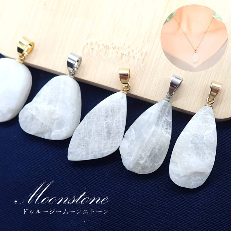 ペンダントトップ ムーンストーン 丸型 ステンレス 約13×23mm ロジウムメッキ スリランカ産 国内自社工場制作 日本製 天然石 変色しにくい 金属アレルギー対応 アカネ 自社管理
