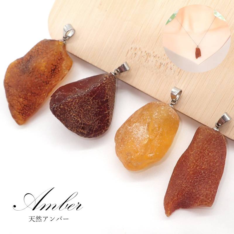 57. 天然アンバー ペンダントトップ シルバー SUS316 リトアニア産 日本製 1個 サージカルステンレス パワーストーン 天然石 浄化 ネックレス アカネ 自社工場制作