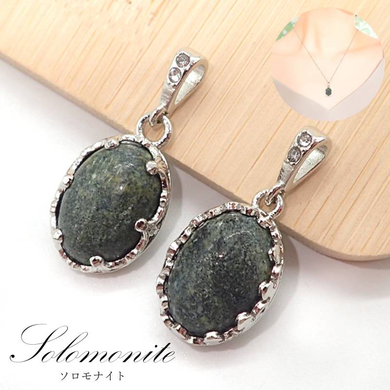 58. ソロモナイト オーバル ペンダントトップ シルバー ステンレス 徳島県産 日本製 1個 サージカルステンレス パワーストーン 天然石 浄化 ネックレス アカネ 自社工場制作