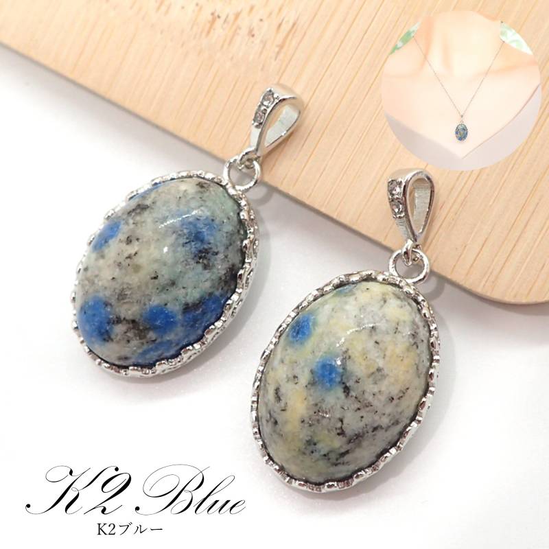 59. K2ブルー オーバル ペンダントトップ ステンレス シルバー ヒマラヤ産 日本製 1個 サージカルステンレス パワーストーン 天然石 浄化 ネックレス アカネ 自社工場制作