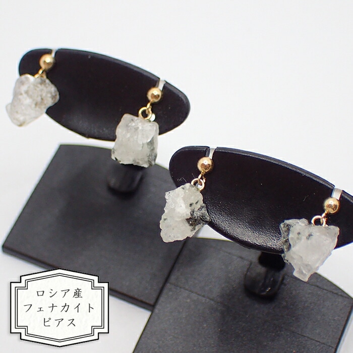 【04. ロシア産 フェナカイト 原石 K18 揺れるピアス 1ペア】 ゴールド 18金 天然石 浄化 日本製 自社工場制作 自社管理 アカネ
