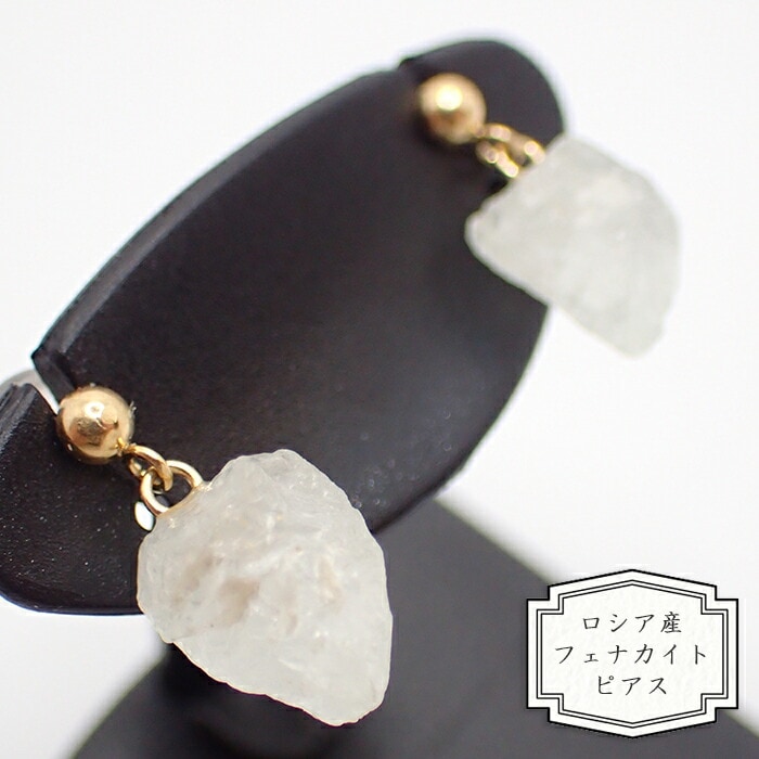 【01. ロシア産 フェナカイト 原石 K18 スタッドピアス 1ペア】 ゴールド 18金 天然石 浄化 日本製 自社工場制作 自社管理 アカネ