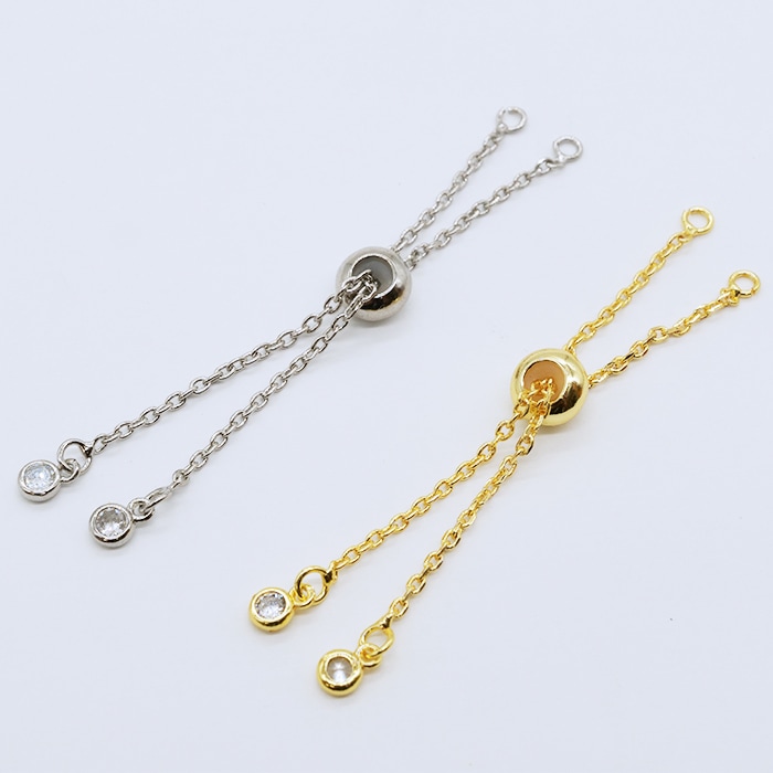 74. スライドボールアジャスター アズキ【1本】【 ゴールド / シルバー】ブレスレット用 留め具 フリーサイズ チェーン ハンドメイド 材料