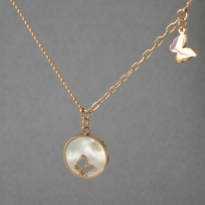 【91】ステンレス ネックレス バタフライ コイン シェル ピンクゴールド 金属アレルギー対応 メール便送料無料