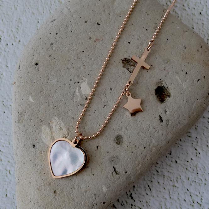 【94】ステンレス ネックレス ハート クロス 星 シェル ピンクゴールド 金属アレルギー対応 メール便送料無料