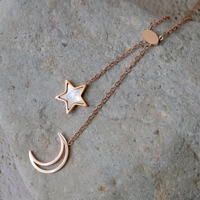 【95】ステンレス ネックレス スター ムーン シェル ピンクゴールド 金属アレルギー対応 メール便送料無料