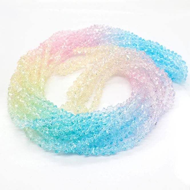 ガラスビーズ【70. ボタンカット(角B) 3×3.6mm 1連】 約32cm クリスタルAB オーロラ メッキガラスビーズ K9ガラス タイヤ パーツ ハンドメイド 国内発送