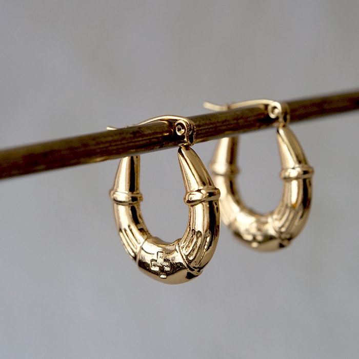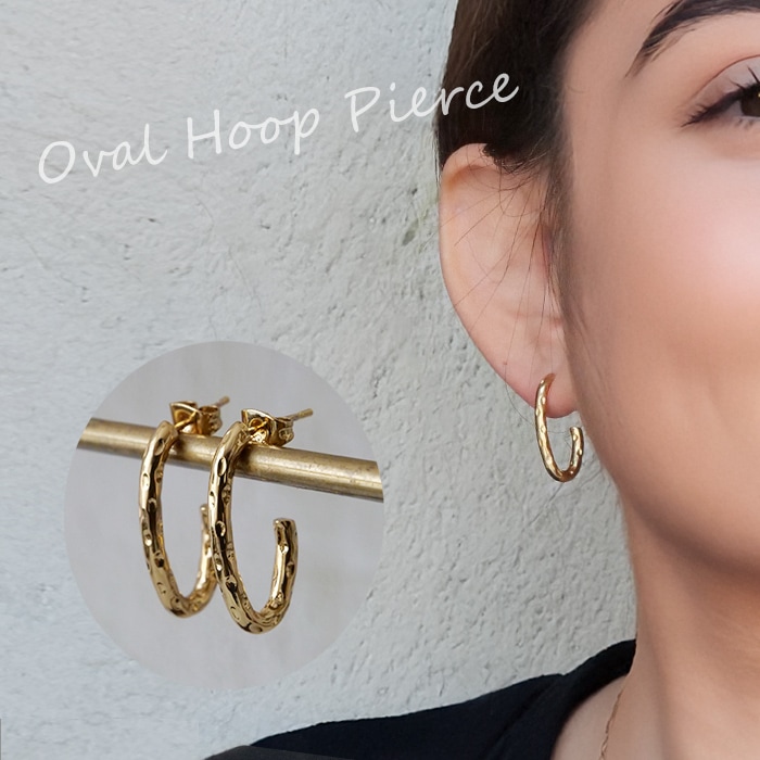 金属アレルギー対応 【244. 槌目オーバルフープピアス C型 1ペア】 ステンレス ピアス ポスト ナチュラル シンプル ゴールド 【メール便送料無料】
