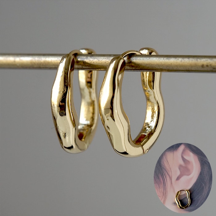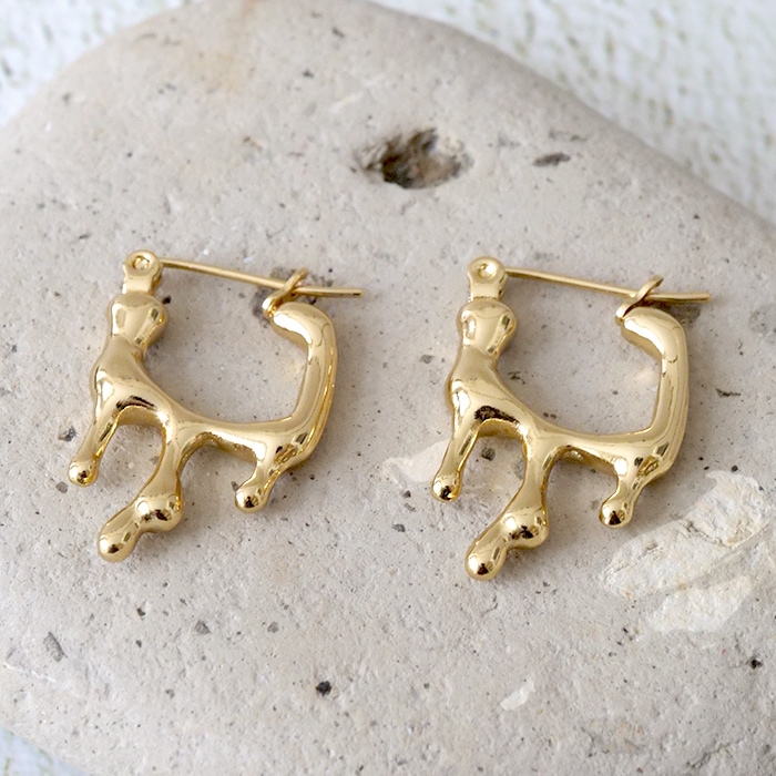 金属アレルギー対応 【255. 変形フープピアス キャッチレス 1ペア】 ステンレス ピアス レディース 変形デザイン ゴールド 大人 シンプル おしゃれ つけっぱなしOK 【メール便送料無料】