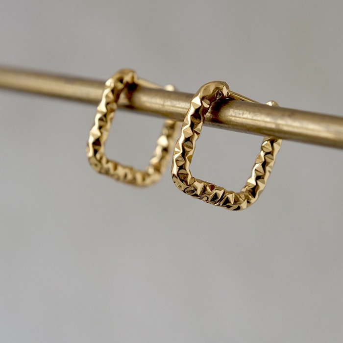 金属アレルギー対応 【248. スクエア ミニ フープピアス 1ペア】 ステンレス ピアス 大人 スクエアデザイン ゴールド シンプル キラキラ 【メール便送料無料】