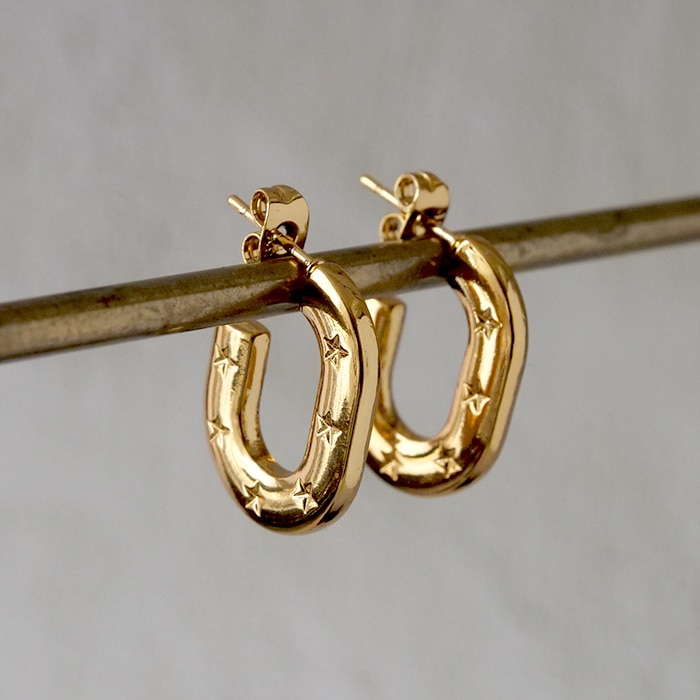金属アレルギー対応 【249. 星柄 C型 オーバル フープピアス 1ペア】 ステンレス ピアス 星モチーフ つけっぱなしOK 【メール便送料無料】
