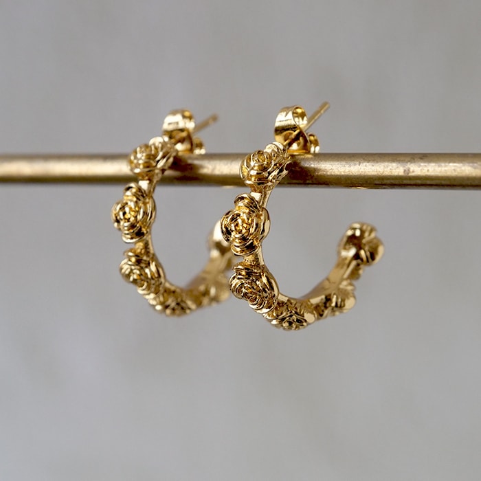 金属アレルギー対応 【250. 薔薇デザイン フープピアス 1ペア】 ステンレス ピアス ゴールド バラモチーフ 華やか 【メール便送料無料】