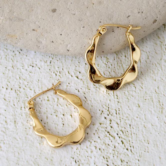 金属アレルギー対応 【251. ウェーブデザイン フープピアス 1ペア】 ステンレス ピアス レディース ゴールド ウェーブデザイン つけっぱなしOK 【メール便送料無料】