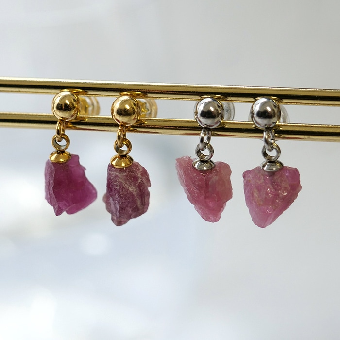 ピンクトルマリン ブラジル産 原石 ピアス 突き刺し型 金属アレルギー対応 サージカルステンレス SUS316 日本製