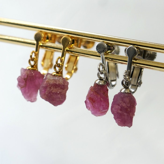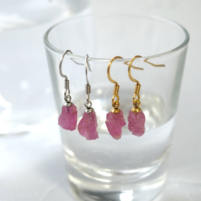 ピンクトルマリン ブラジル産 原石 イヤリング ネジバネ式 金属アレルギー対応 サージカルステンレス SUS316 日本製