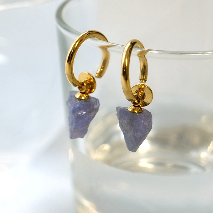 タンザナイト タンザニア産 原石 フープ イヤリング イヤークリップ 金属アレルギー対応 サージカルステンレス SUS316 日本製